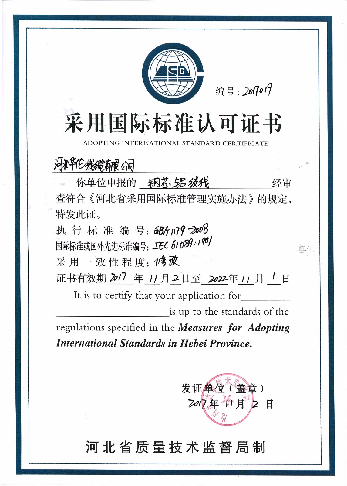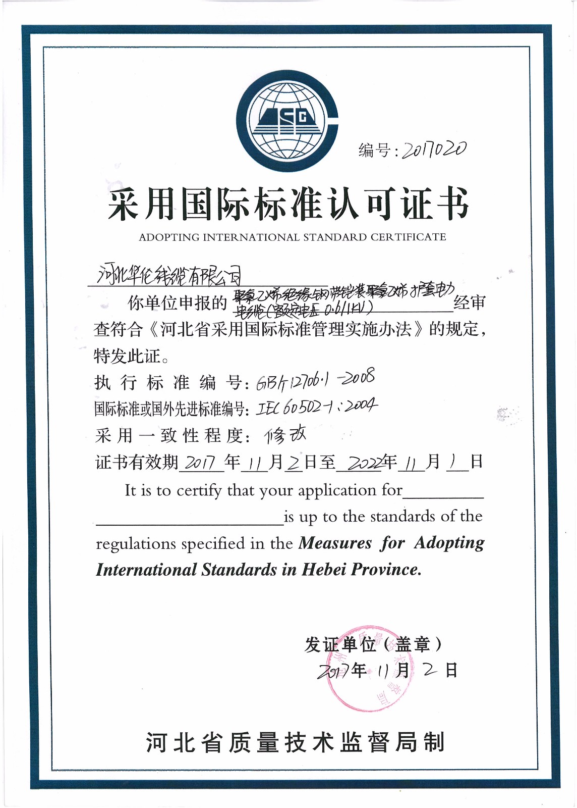 采用國(guó)際標(biāo)準(zhǔn)認(rèn)可證書