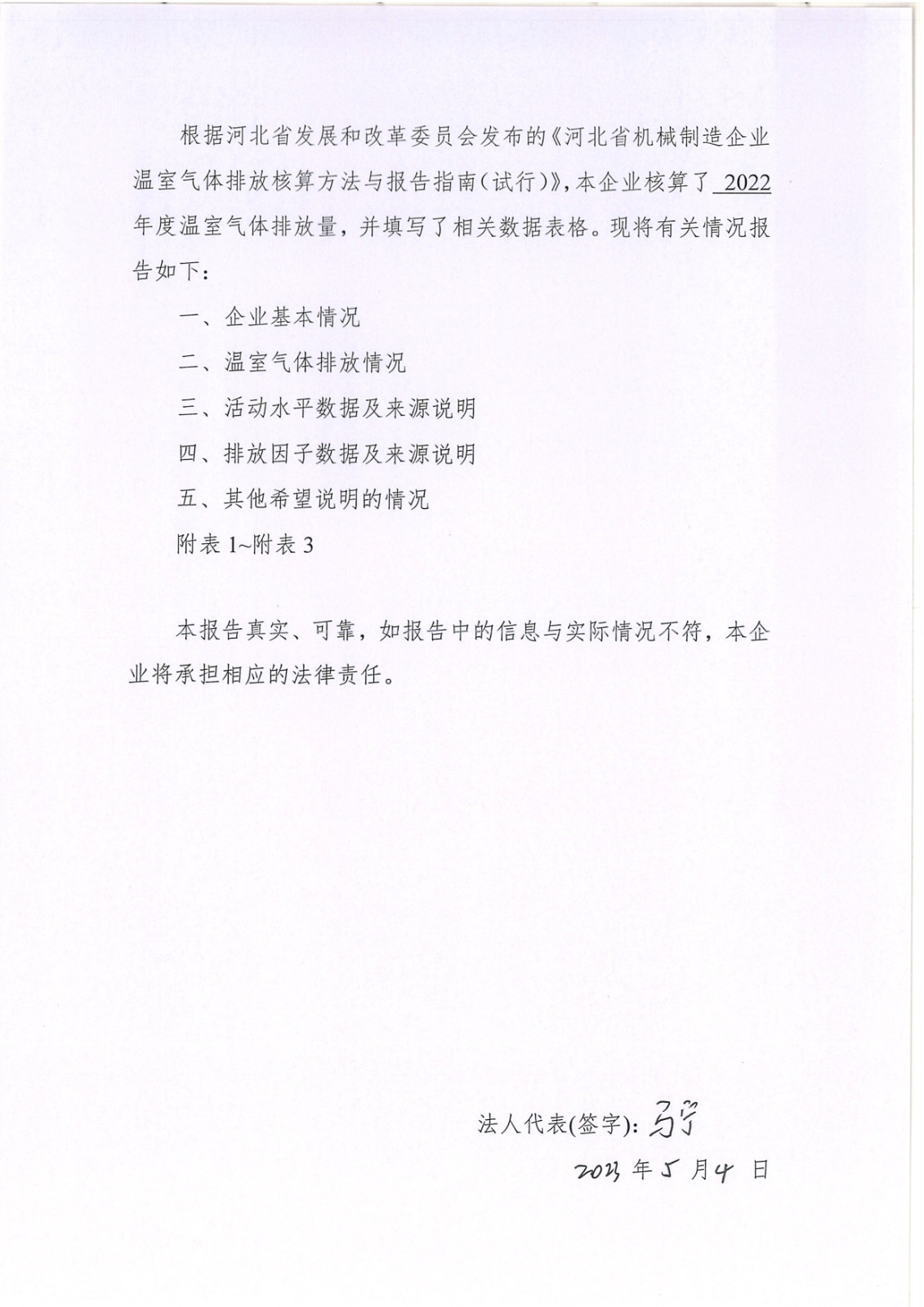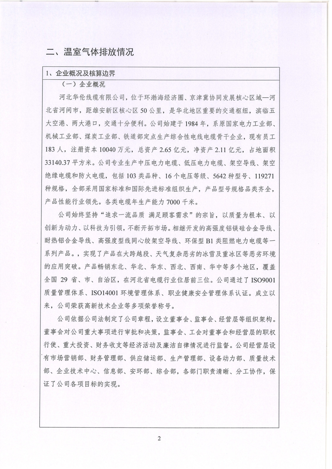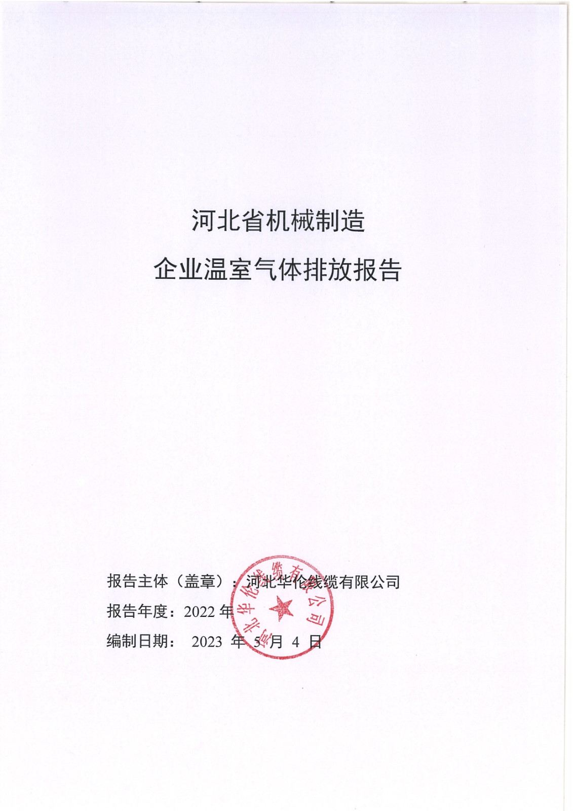 河北華倫線纜有限公司2022年溫室氣體排放報告及改善計(jì)劃